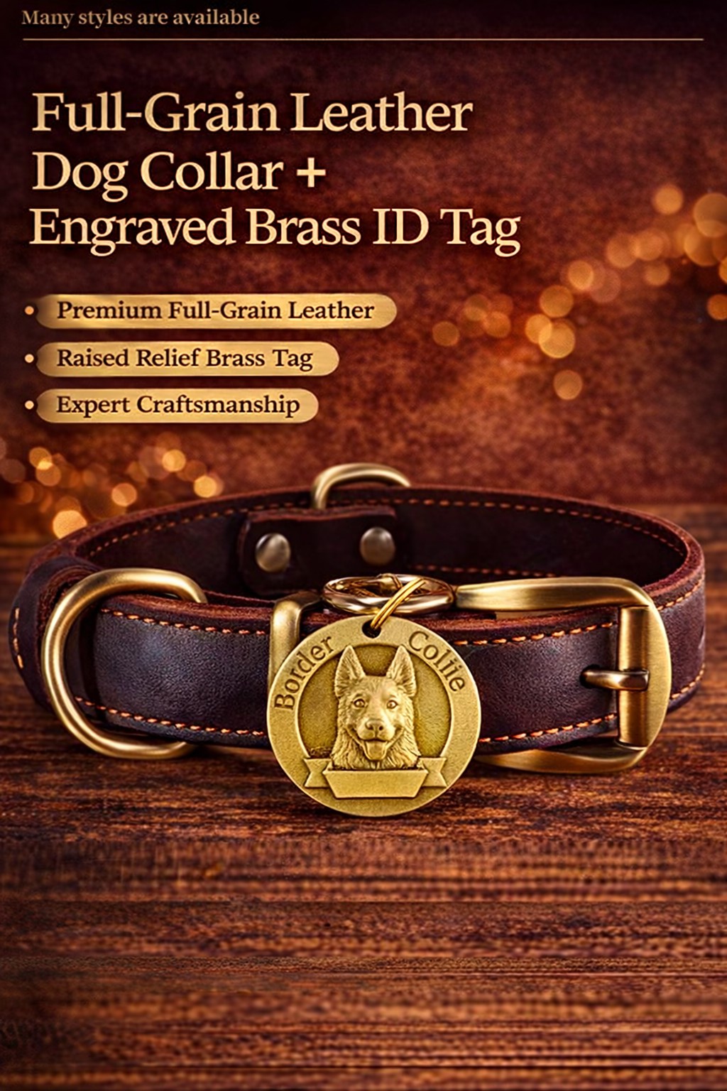 Leather Collar, Leather Collar + Custom Brass Tag (Universal), Leather Collar + Custom Brass Tag (Border Collie), Leather Collar + Custom Brass Tag (Alaskan Malamute), Leather Collar + Custom Brass Tag (German Shepherd), Leather Collar + Custom Brass Tag (Husky), Leather Collar + Custom Brass Tag (French Bulldog), Leather Collar + Custom Brass Tag (Labrador Retriever), Leather Collar + Custom Brass Tag (VIP Style), Leather Collar + Custom Brass Tag (Schnauzer), Leather Collar + Custom Brass Tag (Golden Retriever), Leather Collar + Custom Brass Tag (Welsh Corgi), Leather Collar + Custom Brass Tag (Pomeranian), Leather Collar + Custom Brass Tag (Doberman)
