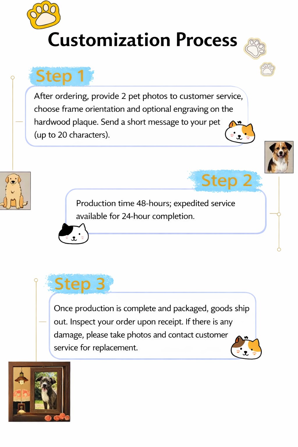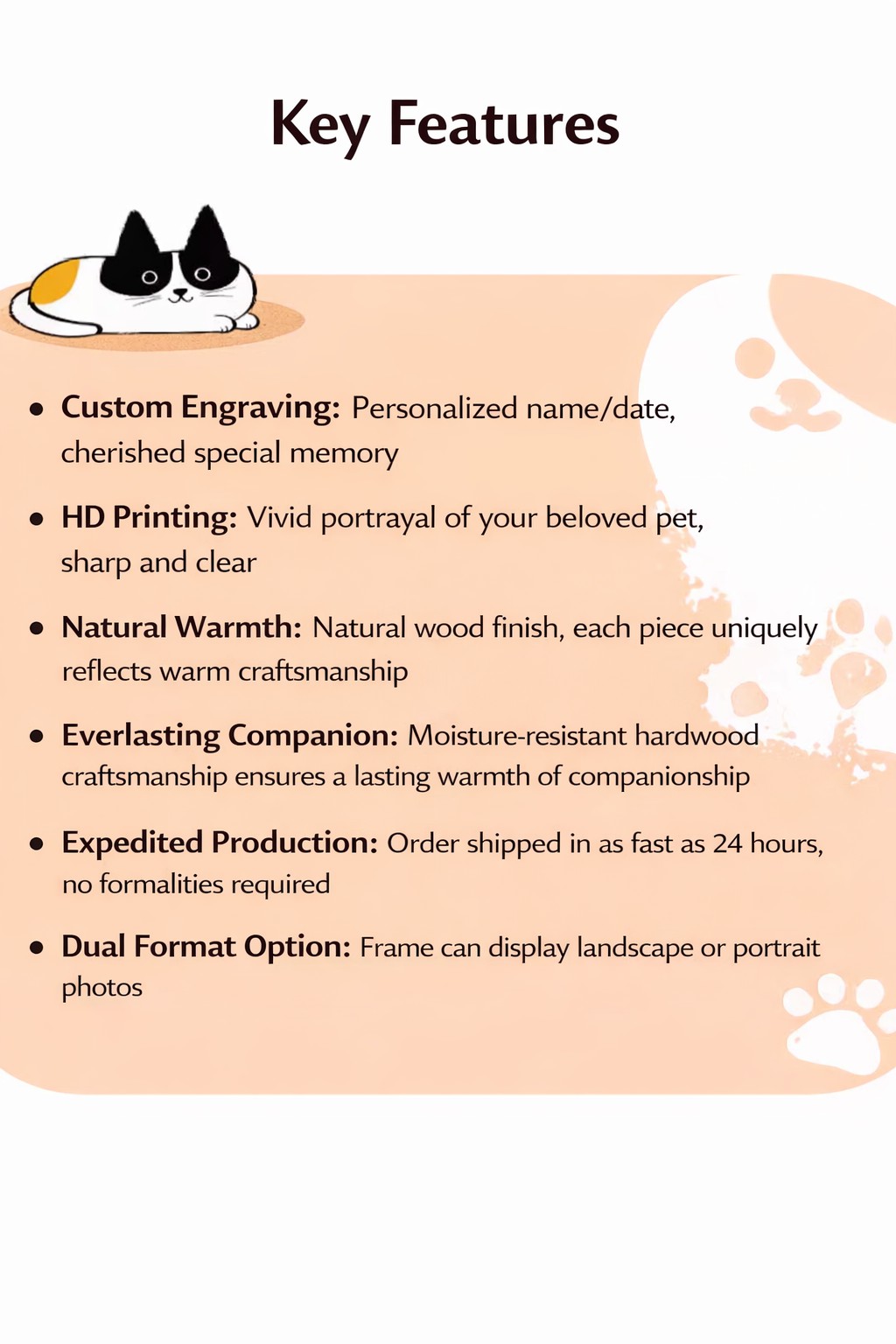 This is a customizable photo frame with engraving options. Create a lasting memory with this personalized pet memorial frame. Featuring warm ambient light and natural wood, it beautifully displays your photo while adding a comforting glow. Customize with your pet’s photo and optional engraving. A meaningful keepsake or heartfelt gift that keeps love close.