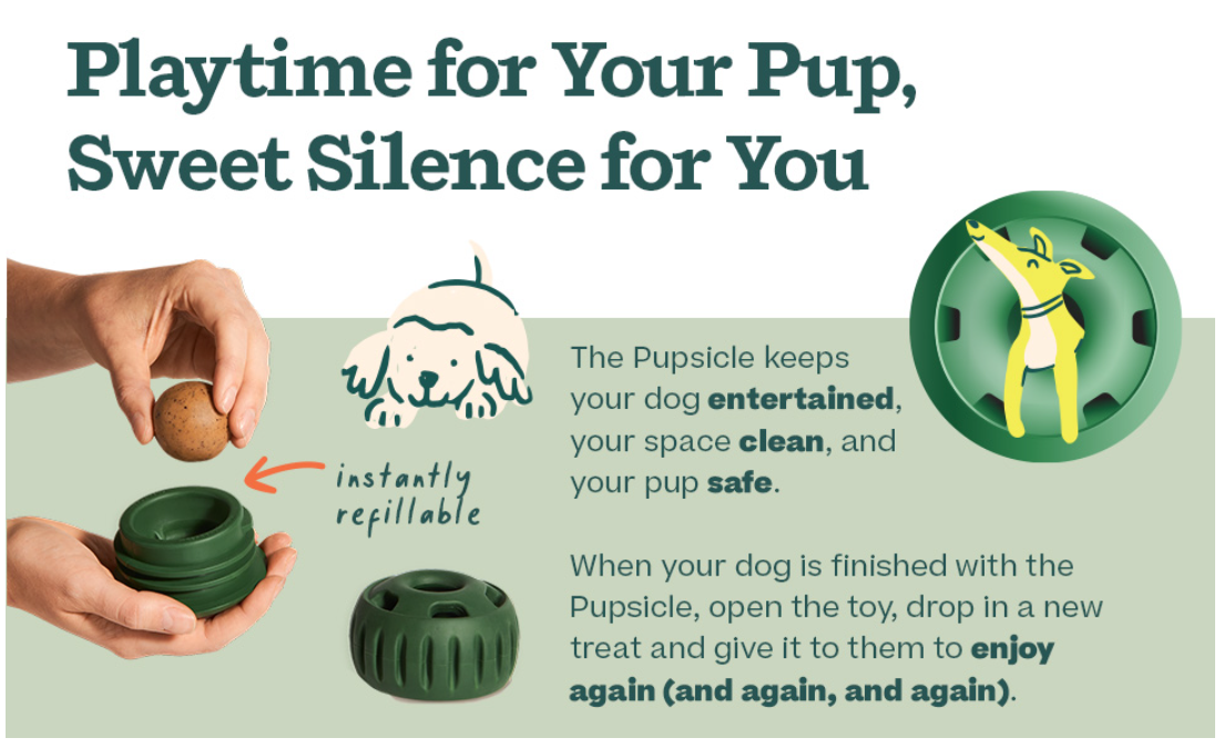 No-Mess Interactive Dog Toy:The Pupsicle opens for easy filling and cleaning. Simply add treats and keep your dog busy with long-lasting, mentally stimulating play. Healthy Homemade Treats:Use the silicone tray to create frozen treats with peanut butter, yogurt, or your dog’s favorite foods. Safe & Durable:Made from food-grade silicone and natural rubber for safe, worry-free chewing.